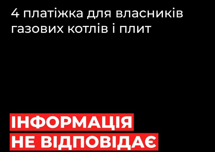 У ЗМІ з’являються повідомлення про нібито «четверту платіжку за газ» для власників котлів і плит. Ця інформація не відповідає дійсності.