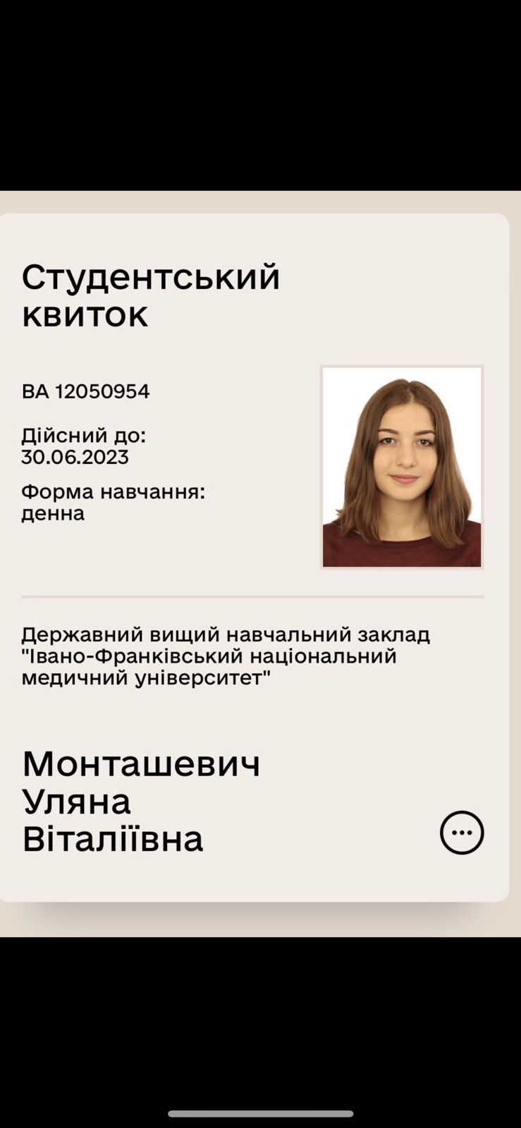 Загублено студентський квиток на ім’я Монташевич Уляна Віталіївна.