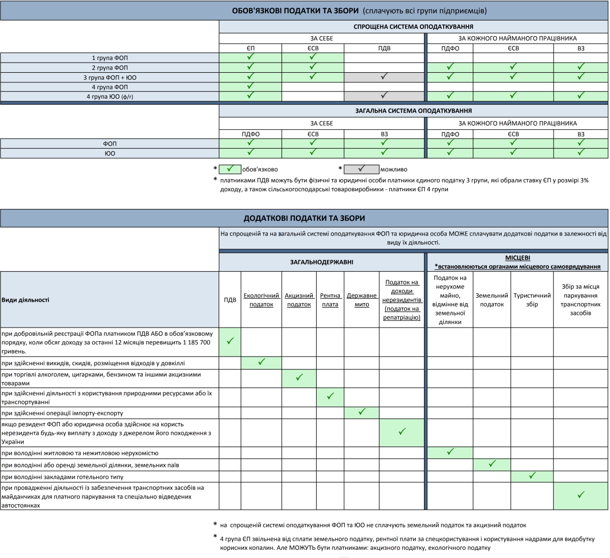 ВАЖЛИВО! — Залежно від виду діяльності підприємці на загальній та спрощеній системах оподаткування МОЖУТЬ сплачувати місцеві податки і збори, які встановлюються органами місцевого самоврядування. |