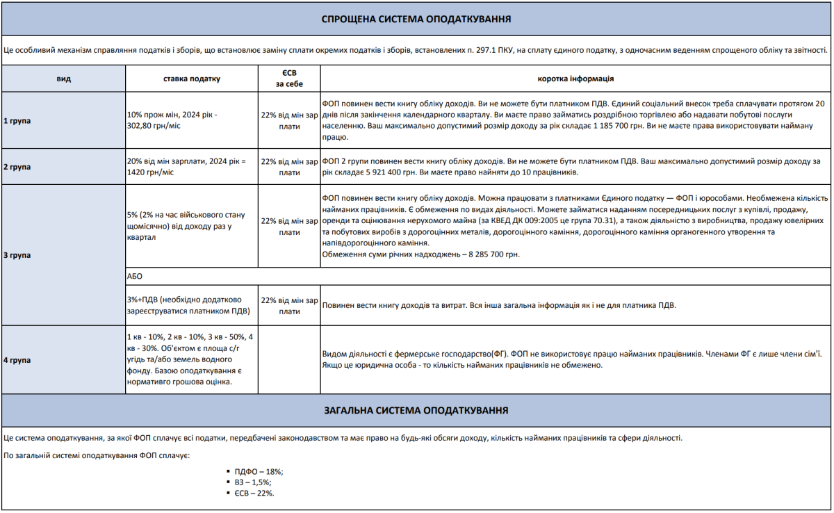 Передбачає право підприємців на будь-які обсяги доходу, кількість найманих працівників та різні сфери діяльності. На загальній системі оподаткування в ОБОВ’ЯЗКОВОМУ порядку передбачено сплату таких податків (за себе та за кожного найманого працівника у випадку їх наявності):