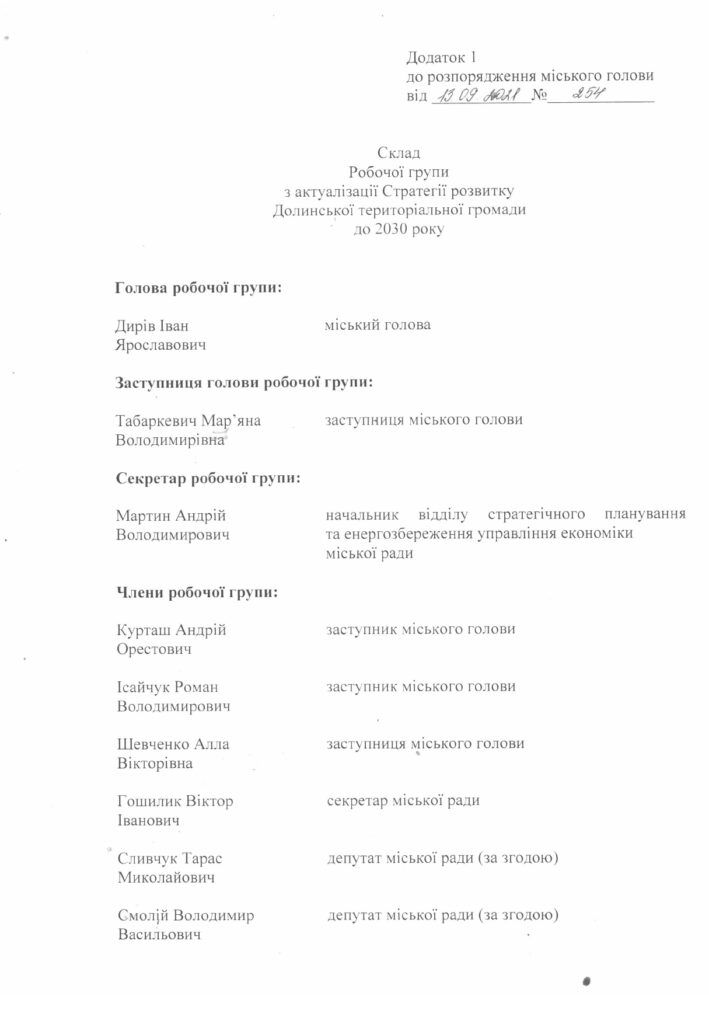 1.Утворити Робочу групу з актуалізації «Стратегії розвитку Долинської територіальної громади до 2030 року» та затвердити її склад згідно з додатком 1.