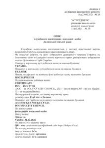 (DCC – це DOLYNA CITY COUNCIL, 2021 – це рік видачі, 07 – це код відділу, 02 – це код працівника)