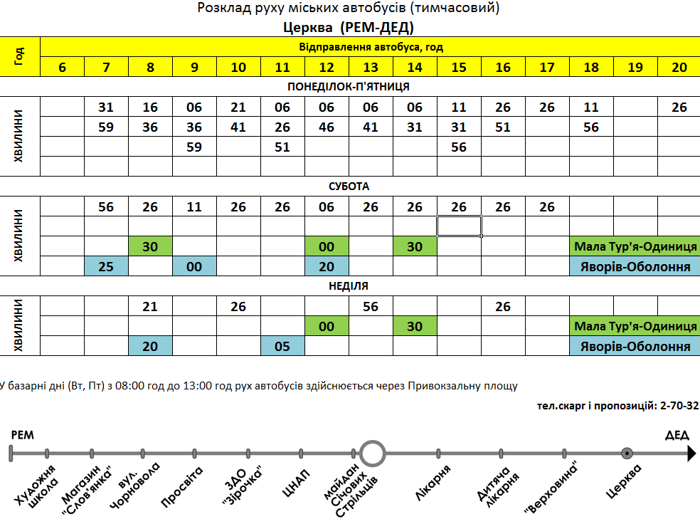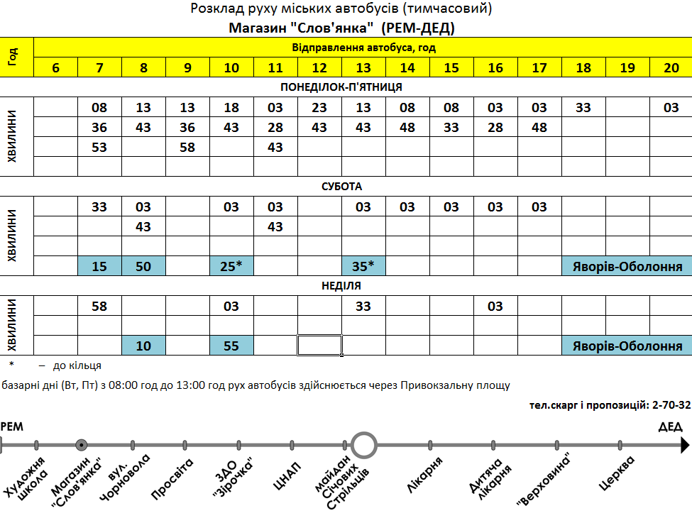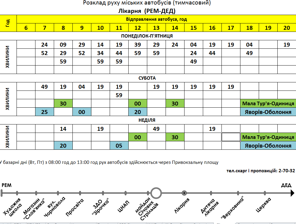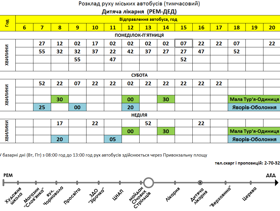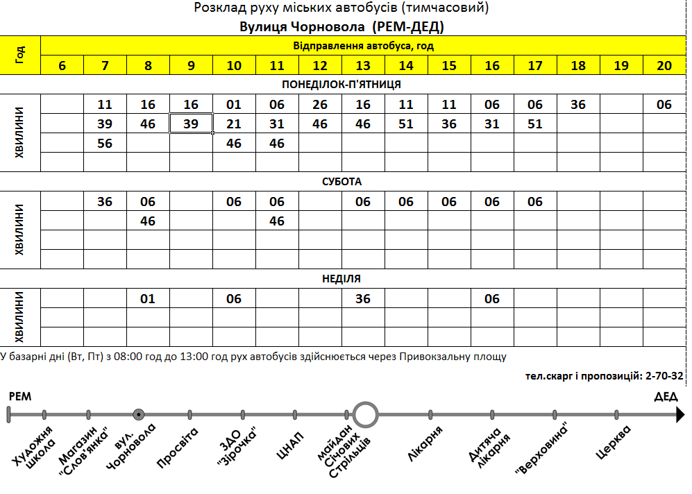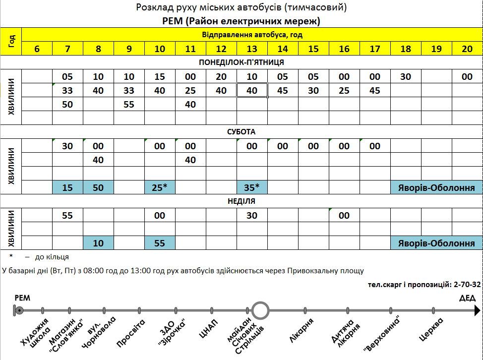 Розклад руху міських автобусів за маршрутом РЕМ – ДЕД