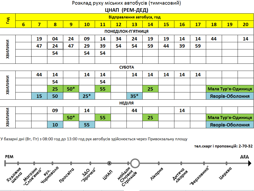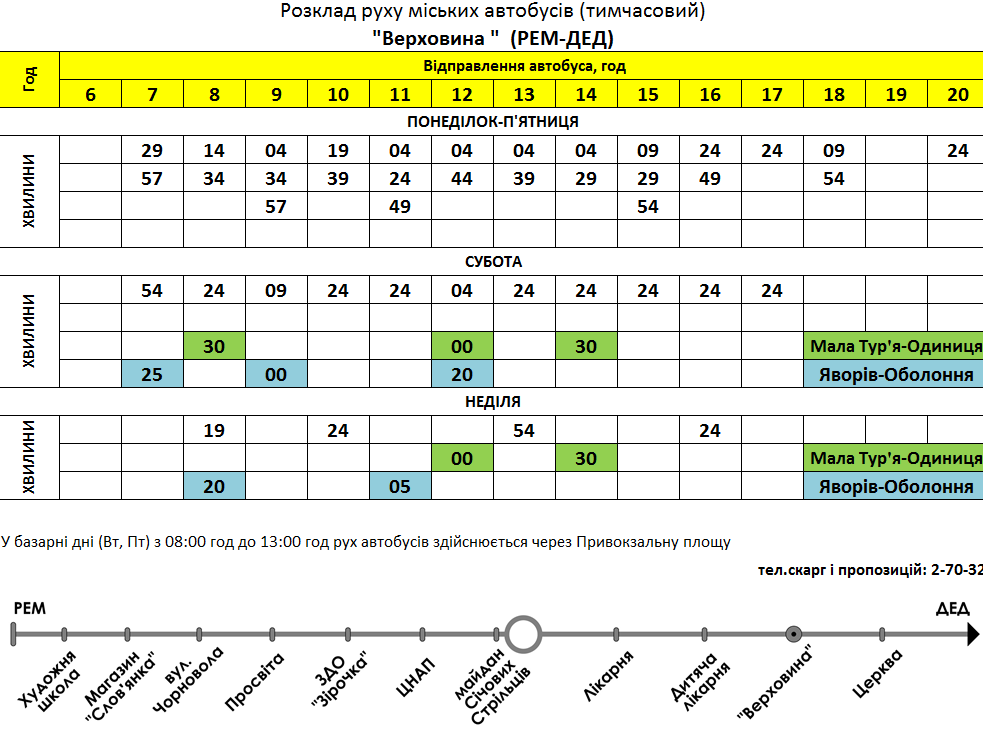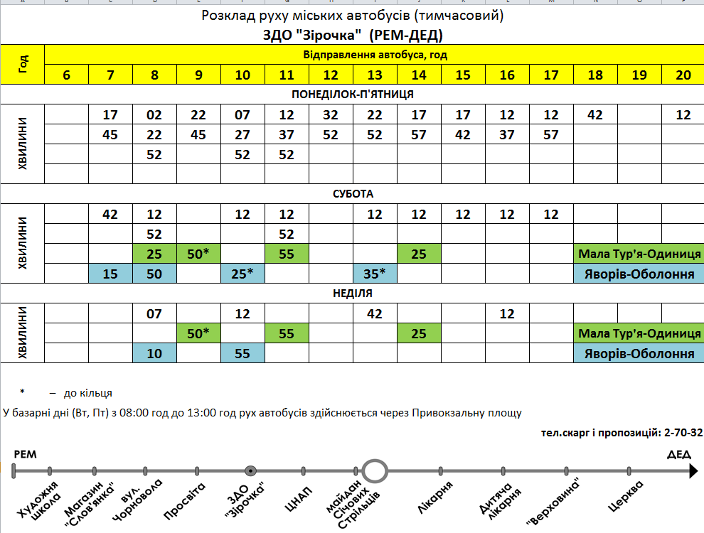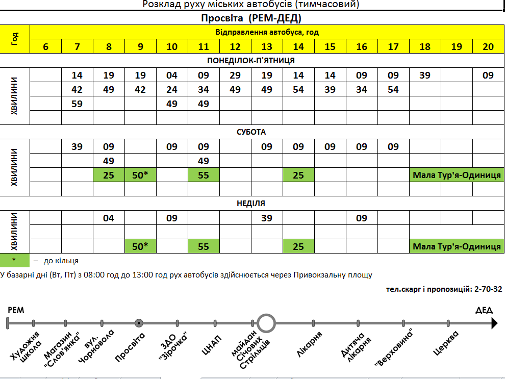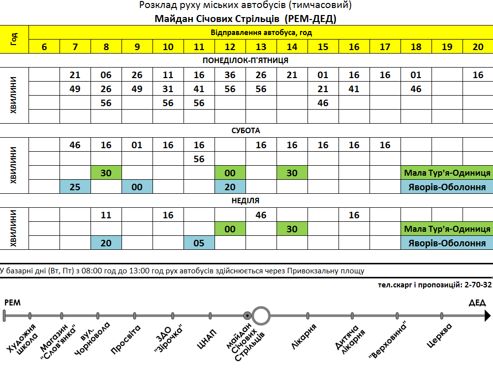 Розклад руху міських автобусів за маршрутом РЕМ – ДЕД