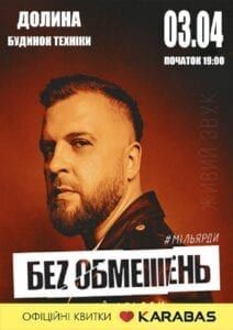 3 квітня, 19:00 година – концерт гурту “БЕЗ ОБМЕЖЕНЬ”