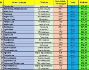 Фондом “Регіональний центр економічних досліджень та підтримки бізнесу” сформовано рейтинг інституційної спроможності і сталого розвитку малих та середніх громад України на 01.01.2020 р.