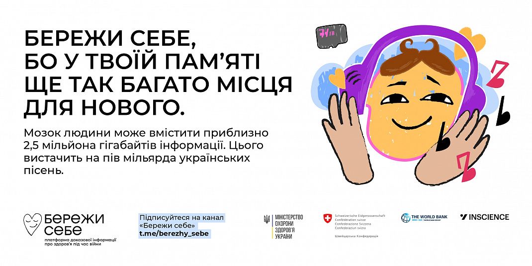 У межах співпраці Міністерства охорони здоров’я України та громадської організації «INSCIENCE» за фінансової підтримки Світового банку та Швейцарської конфедерації реалізується комунікаційна кампанія «Бережи себе».