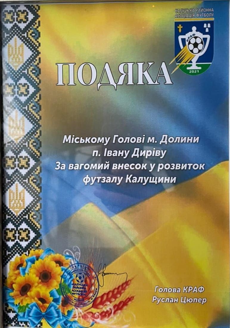 Дякую голові Калуської районної Асоціації футболу Руслану ЦЮПЕРУ за сприяння та заохочення спортсменів розвиватися в улюбленій справі!