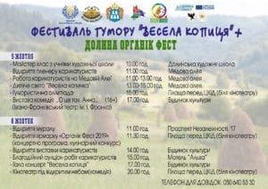 Фестиваль гумору та сатири – “Весела копиця” та “Долина Органік Фест” – це смачна їжа, концерт відомих гумористів та співаків, розваги для дітей, вистава-комедія, фільми, танці, пленери та ще багато цікавих сюрпризів. В рамках реалізації конкурсу культурно-мистецьких