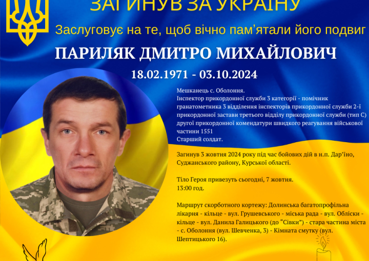 Мешканець с. Оболоння ДМИТРО ПАРИЛЯК повертається додому... на щиті