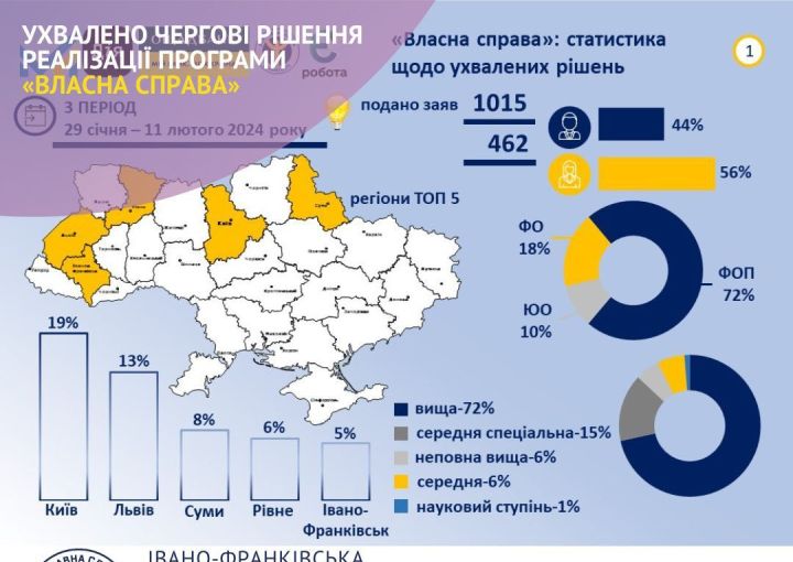 Ухвалено чергові рішення щодо реалізації програми «Власна справа», за результатами яких Івано-Франківщина знову у п’ятірці лідерів