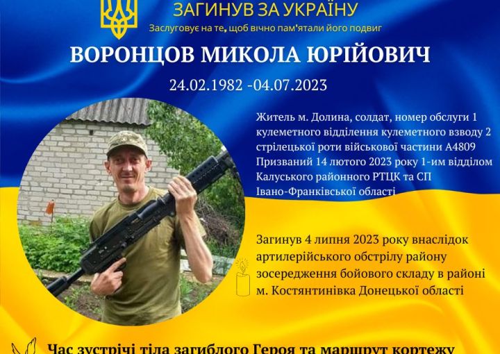 Отримали жахливу звістку із фронту: загинув наш земляк, мешканець Долини ВОРОНЦОВ МИКОЛА ЮРІЙОВИЧ