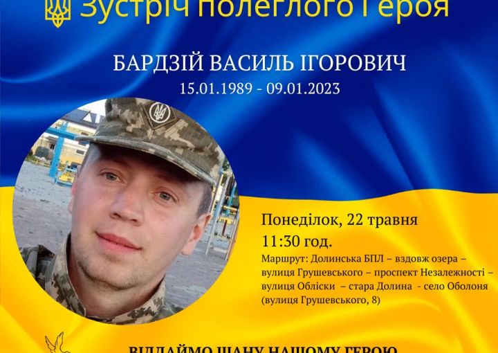 Прохання до всіх жителів громади зустріти загиблого ВАСИЛЯ БАРДЗІЯ у формі живого коридору із лампадками та квітами