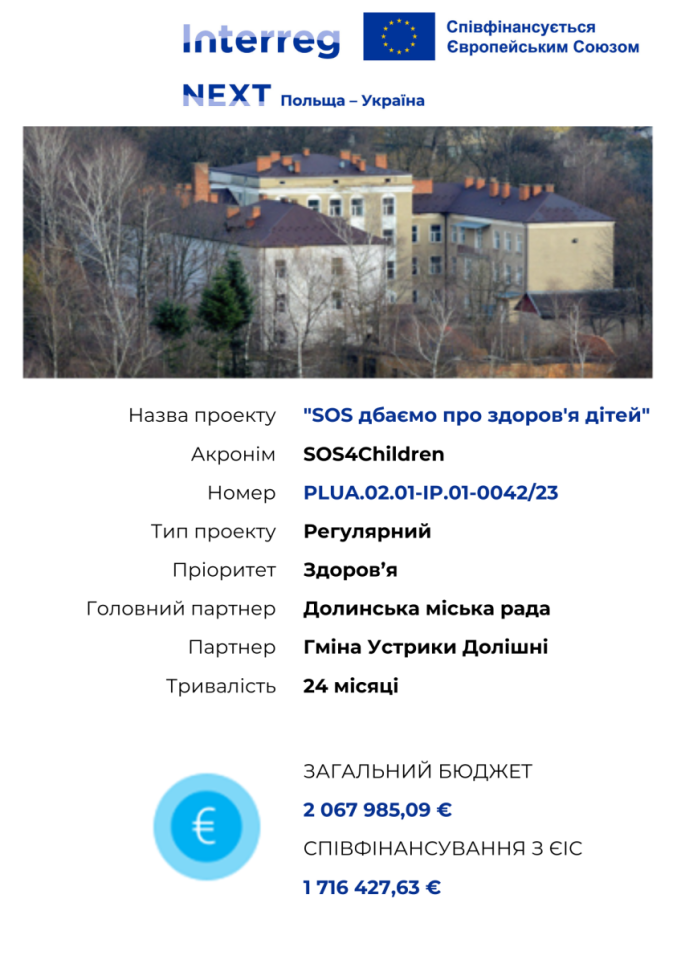 Проект реалізується в рамках Програми Interreg NEXT Польща - Україна 2021-2027 , що співфінансується Європейським Союзом. Він матиме довгостроковий вплив на систему охорони здоров’я в обох громадах, сприяючи зміцненню транскордонного співробітництва та створенню сталих механізмів підтримки дітей.