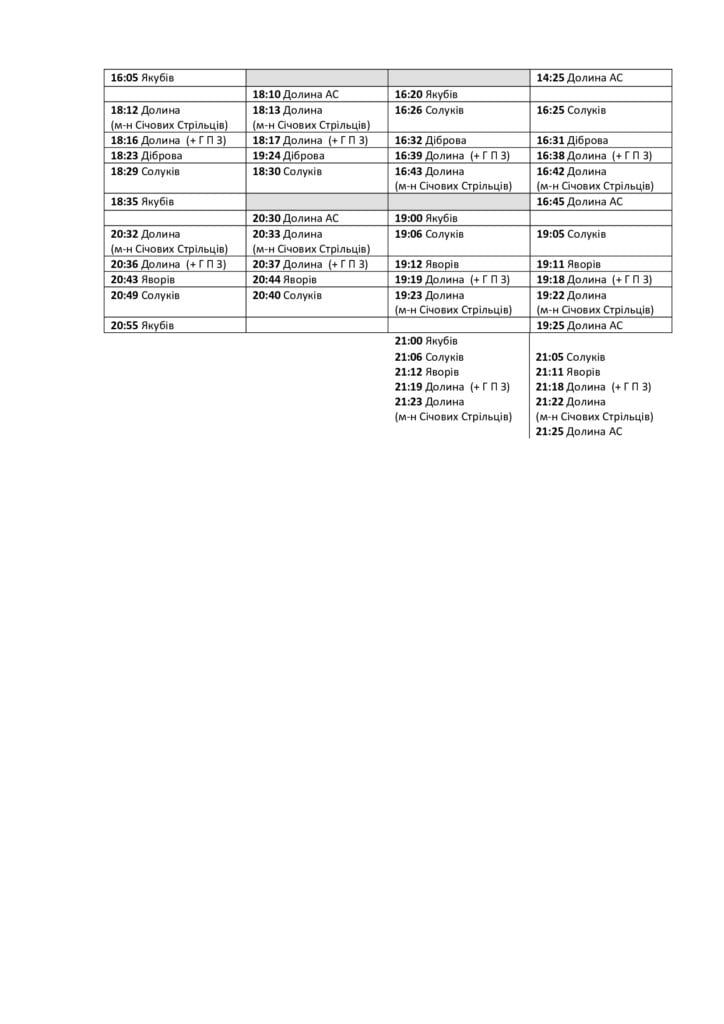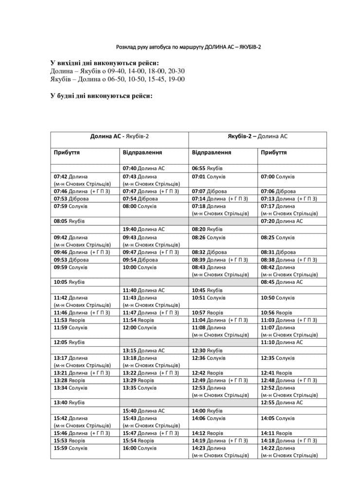 Розклад руху автобуса по маршруту ДОЛИНА АС – ЯКУБІВ-2